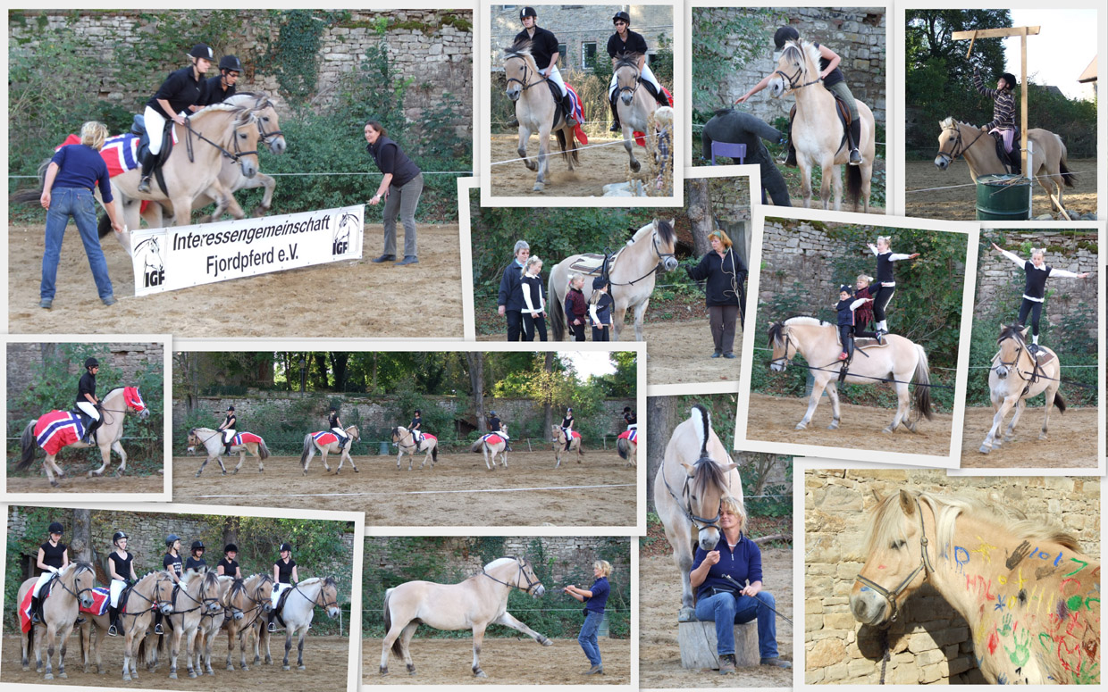 Der Vergleich zwischen den Mannschaften wird jedes Jahr zum Fjordcup der IGF ausgetragen. Zu einer Mannschaft können sich bis zu 5 Teilnehmer aus bis zu 2 Bundesländern zusammenschließen. Zur Wertung gehört eine E-Dressur, ein Springreiterwettbewerb und ein Präzisionsparcours. Die besten 2 Wertnoten der Teilnehmer werden gezählt. Da unsere Mannschaft in diesem Jahr nur aus 2 Teilnehmern bestand (Susanne und Jana) haben wir uns noch Elke Kutz mit Ilaan ausgeborgt. Sie ritt für uns den Präzisionsparcours mit, wo sie mit einem 3. Platz auch richtig punkten konnte. Aber alles andere mussten wir allein machen - und haben es auch geschafft! Vielleicht haben wir ja im nächsten Jahr etwas mehr Unterstützung?!